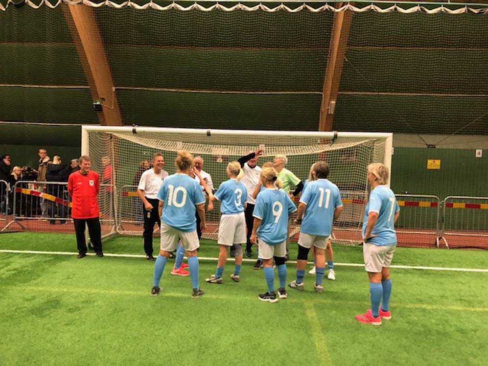 Hvorfor var det damehold specielt? Jo, holdet bestod blandt andre af fem tidligere landsholdsspillere, hvoraf en havde opnået titel som europamester. Efter kampen var der fællesbillede og analyse af kampens forløb.