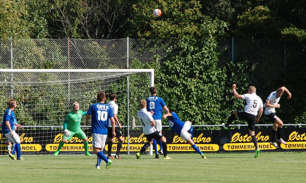 Men det var os der havde den første chance. En af banens bedste spillere – superbacken Dennis Lind – lagde et perfekt indlæg, men først hovedstødet og siden den efterfølgende retur blev flot reddet af ”Muren fra Asien” – Butt i målet og så var vi lige vidt. På det tidspunkt virkede det som om at Jægersborg havde mest momentum og vi fik i denne fase af kampen en del omstillinger i mod os.
