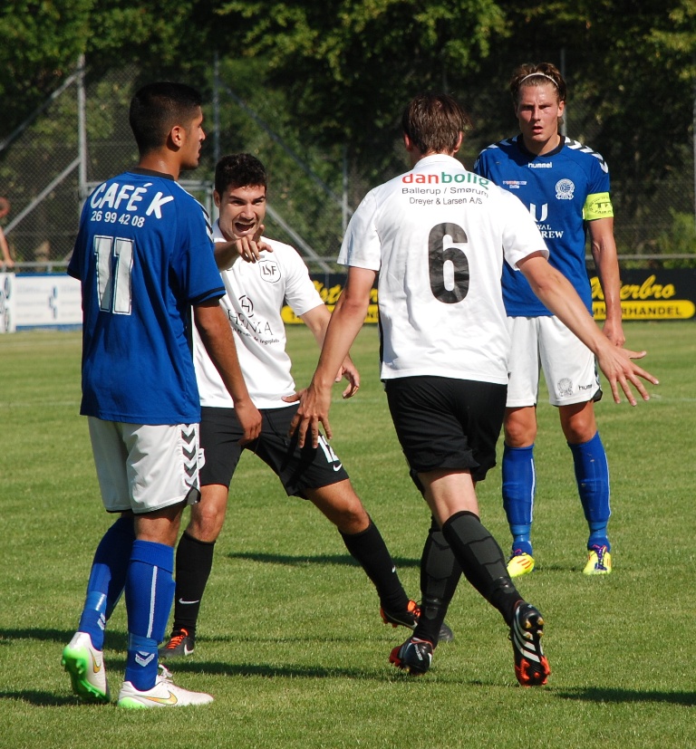 Det var som om, at vores drenge i den periode lod sig frustrerer af, at tingene ikke rigtigt ville lykkes. Men heldigvis kom vi ind i en bedre rytme de sidste 10. min. af halvlegen og i det 40. min. gav det bonus. Vi havde lidt tidligere fået et frispark uden for feltet og den sendte Store Larsen på tværribben så de var advaret.