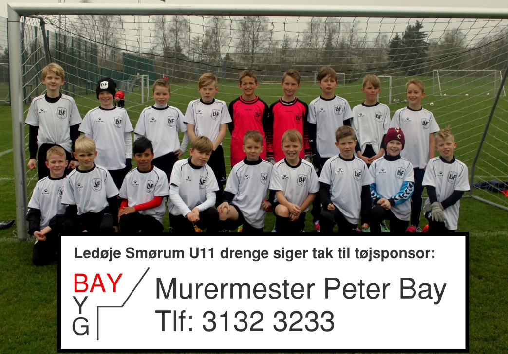 U11 har fået sponsoreret nye trøjer, shorts og strømper fra Bay-Byg ved Murermester Peter Bay og stillede således op til sæsonstart i det nye tøj.