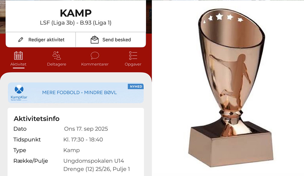 UNGDOMSPOKALEN: LSF U14 mod B93 U14 - onsdag den 17/9 kl. 17:30 på Sydbank Arena.